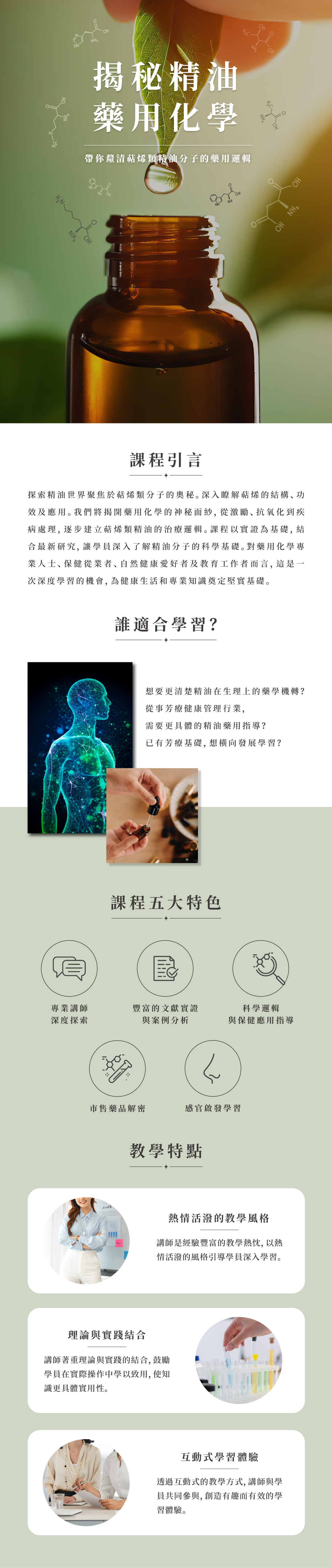 4. 教材相關寄送: 報名截止後會於開課前全班統一寄送教材,讓學員能無差別的收到同一批精油。
